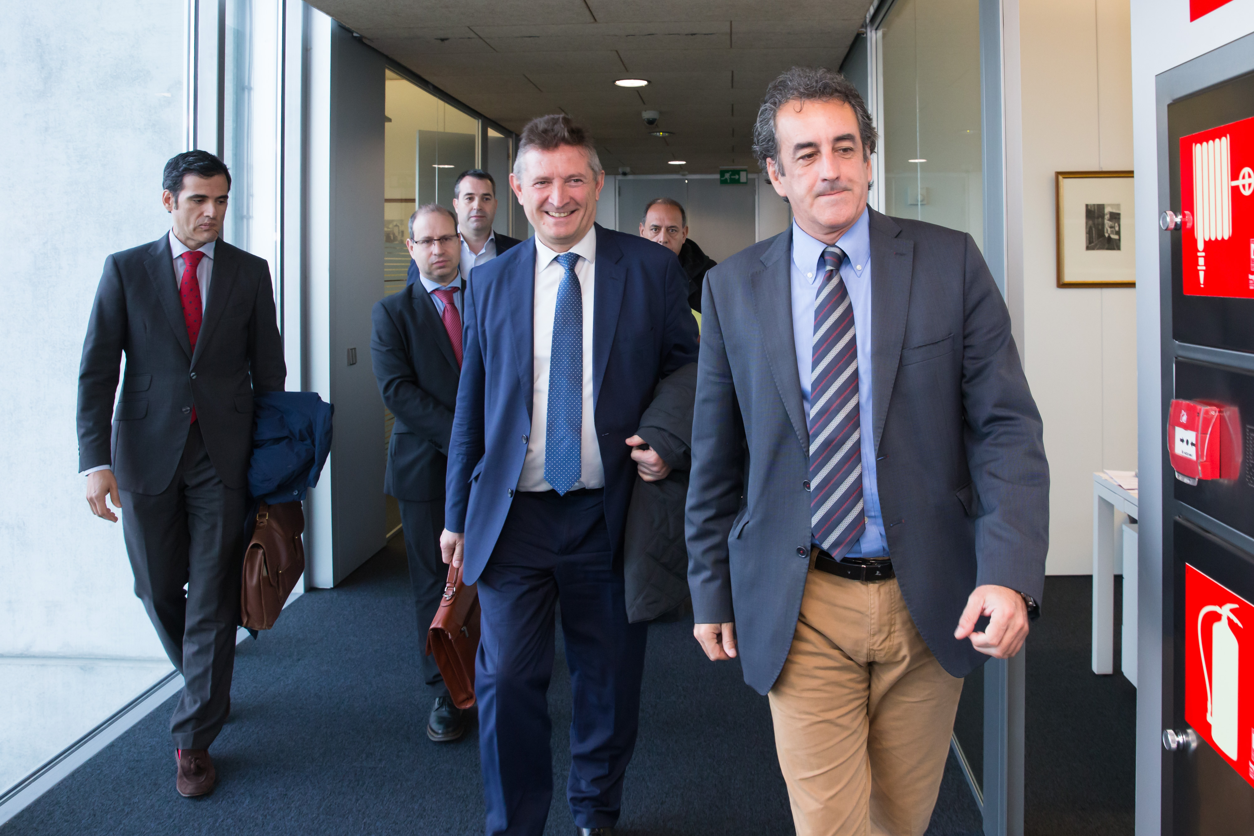 El Consejero de Innovación, Industria, Transporte y Comercio del Gobierno de Cantabria, Francisco Martín y el director general de AEGE -Asociación de Empresas con Gran Consumo de Energía-, Fernando Soto, mantuvieron un encuentro para analizar temas de impacto del sector industrial, como el precio final de la energía eléctrica y su comparativa a nivel europeo, y las medidas adoptadas por otros países en favor de la competitividad de la industria electrointensiva. Asistieron directivos de Sidenor, GSW (Grupo Celsa), FerroAtlántica y Bondalti Cantabria, algunas de las principales industrias electrointensivas de Cantabria.