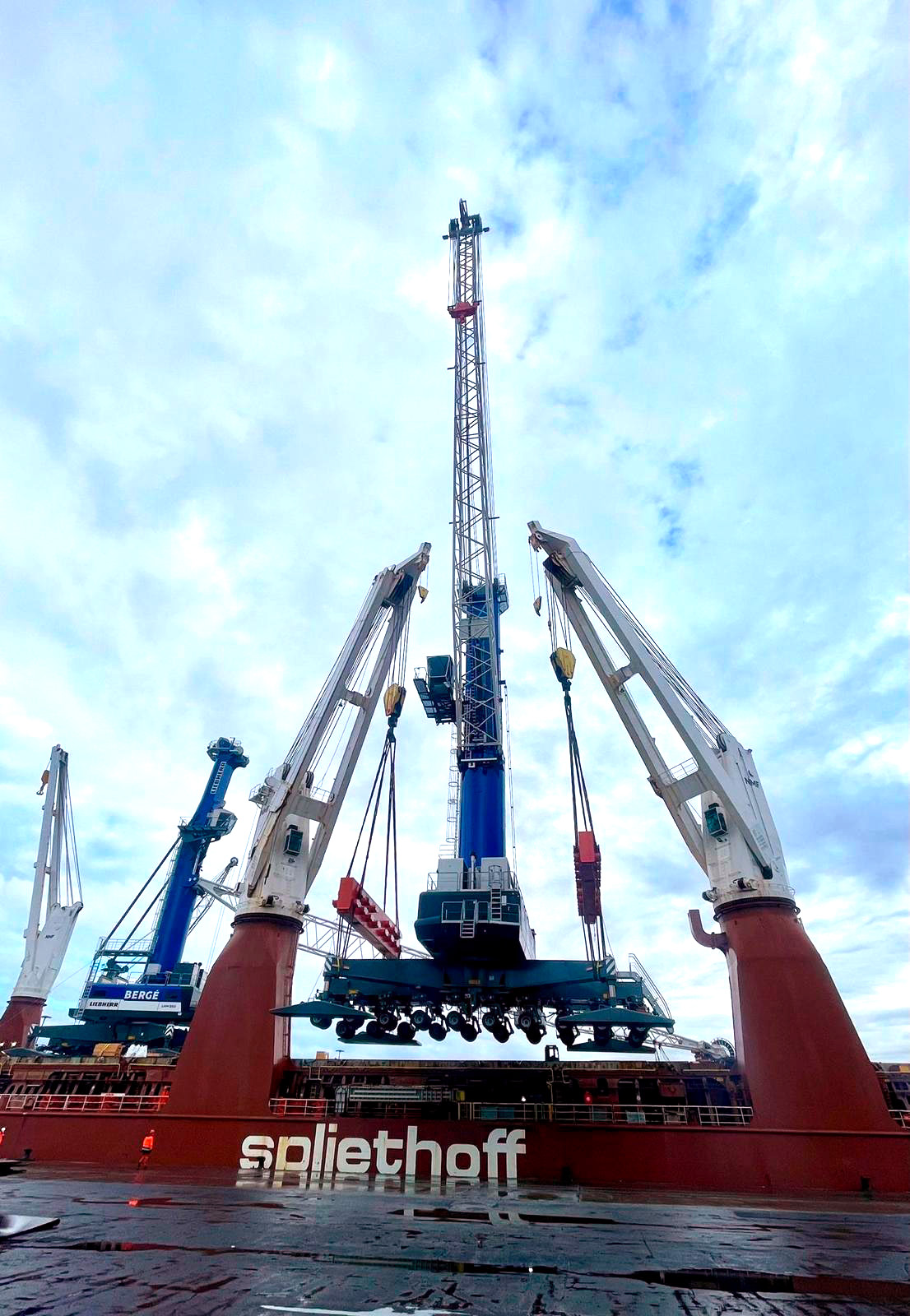 El pasado mes de septiembre, el operador logístico Bergé recibió en el puerto de Bilbao la primera unidad, de un total de seis, de la grúa móvil portuaria Liebherr LHM 550. Estos equipos, dotados con 54 metros de alcance y una capacidad máxima de carga de 144 toneladas, trabajarán, fundamentalmente, en operativas de graneles, productos siderúrgicos y carga de proyectos en los puertos de Tarragona, Huelva y en el de la capital de Vizcaya.