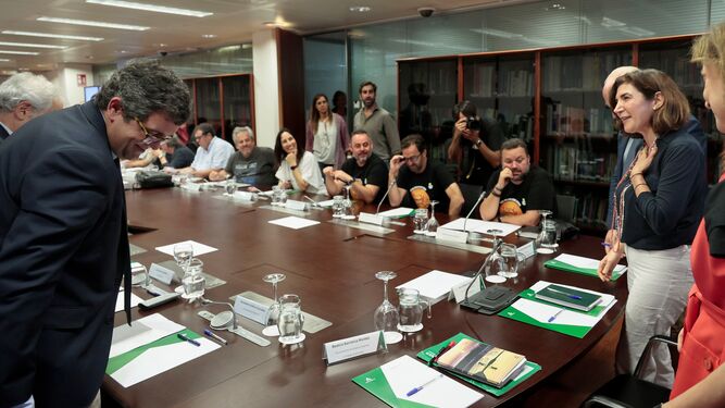 La reunión ha comenzado pasados unos minutos de las 11:00 de este lunes en Sevilla, en la sede de la Consejería de Empleo, Empresa y Trabajo Autónomo bajo la presidencia de la consejera, Rocío Blanco. Durante la larga jornada, ambas partes se han intercambiado propuestas, que han provocado recesos para que los sindicatos, por un lado, y la empresa, por otro, analizaran los datos y realizaran una contraoferta. Todo ello, partiendo del borrador presentado por los técnicos de mediación del Consejo Andaluz de Relaciones Laborales (CARL) que la plantilla rechazó en votación el pasado mes de mayo y en el que se han ido incluyendo algunos matices.