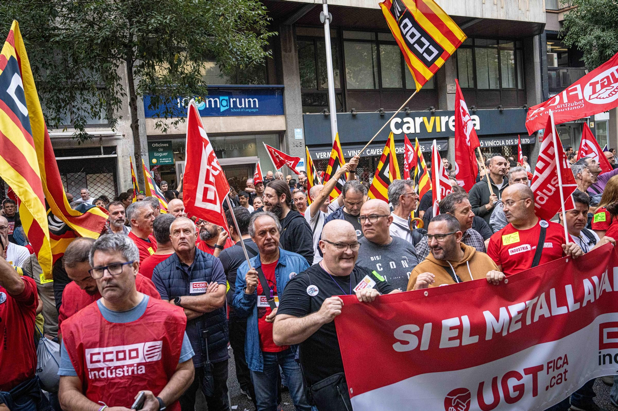 Este miércoles 29 de octubre y mañana jueves, 30 de octubre, unos 180.000 trabajadores del sector del metal están llamados a la que será el primer paro de la metalurgia en Barcelona en décadas. Centenares de trabajadores del metal y delegados se concentran en Via Laietana, frente a la sede de Foment del Treball para forzar a los empresarios a que mejoren su propuesta. “Queremos una patronal digna que este a la altura, los derechos no son compensables no absorbibles”, ha declarado el secretario general de UGT de Catalunya, Camil Ros. Las centrales ven margen para llegar a un acuerdo si la patronal mejora su oferta y fían a una nueva jornada de movilización, este jueves, lograrlo. “Hay márgenes, tienen beneficios suficientes. Si hoy no se sientan a negociar les saldrá más caro”, ha señalado la líder de CCOO de Catalunya, Belén López. “Tenéis a toda Catalunya mirando esta huelga”, ha instado a los suyos.