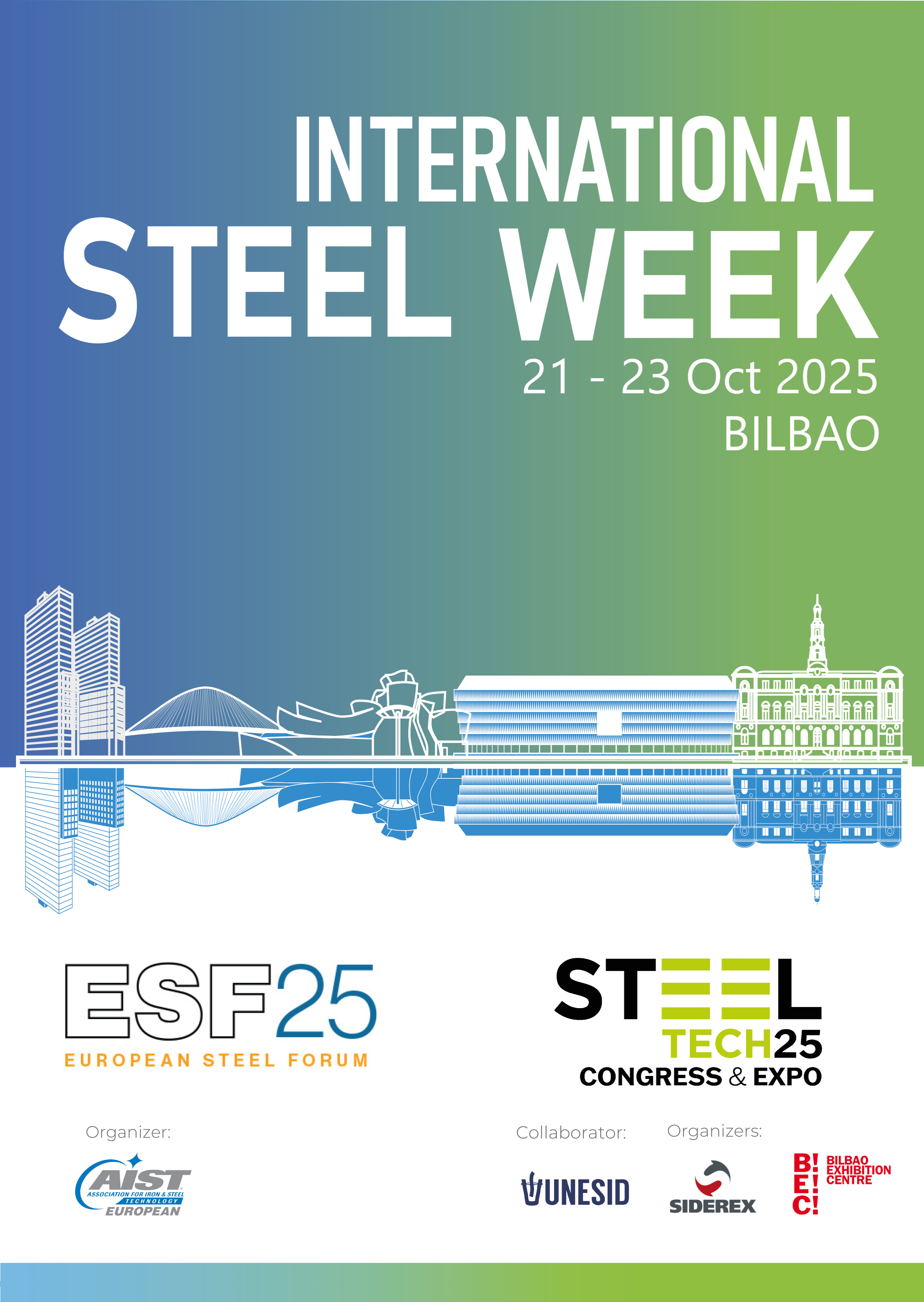 Está organizado por Siderex, Asociación Clúster de Siderurgia, y Bilbao Exhibition Centre, y cuenta con la colaboración de UNESID. En este contexto, International Steel Week se desarrollará durante tres días como una experiencia internacional única. El 21 de octubre arrancará en BEC con una combinación de congreso y exposición que ofrecerá un enfoque transversal y estratégico, abordando los principales retos y oportunidades globales del sector.