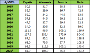 - Es de destacar que la gran industria de Francia adquiere un 62% de su electricidad con contratos más competitivos que el precio de sus mercados eléctricos a través de la tarifa ARENH, a 42 €/MWh.