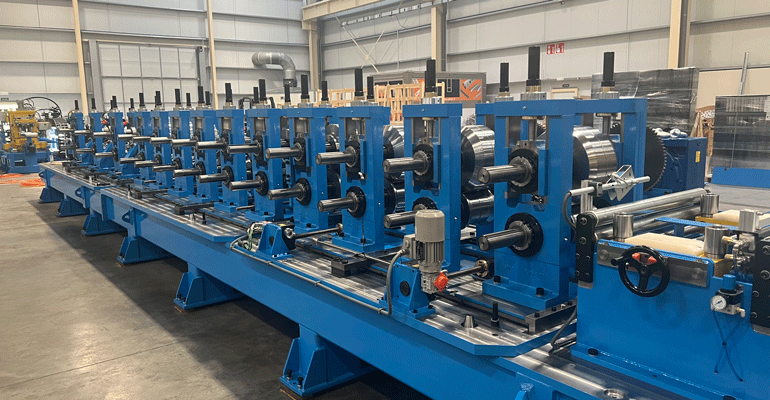 La línea incorpora un sistema de punzonado flexible y cambia de forma automática entre diversos perfiles, ancho y altura en menos de 7 minutos. La perfiladora además permite producir otros perfiles presentes o futuros ya que el cambio de casete es rápido, lo que dota a la instalación de una gran flexibilidad y una altísima productividad.